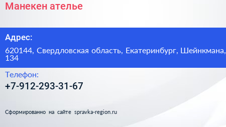 Манекен, ателье по адресу 620144, Свердловская область, Екатеринбург, Шейнкмана, 134 в дальнейшем Организация, размещена в следующих категориях: