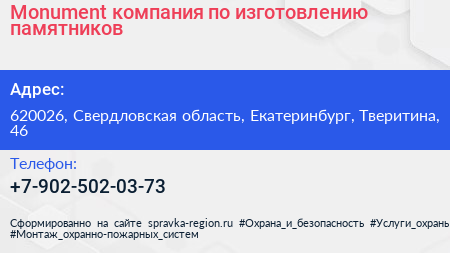 Monument, компания по изготовлению памятников в Екатеринбурге