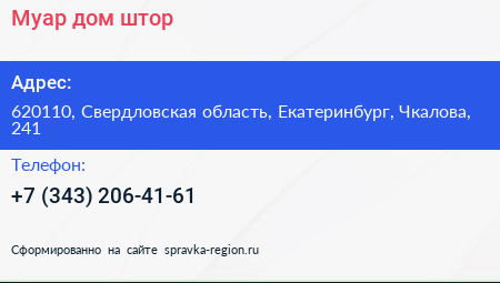 Муар, дом штор по адресу 620110, Свердловская область, Екатеринбург, Чкалова, 241 в дальнейшем Организация, размещена в следующих категориях: