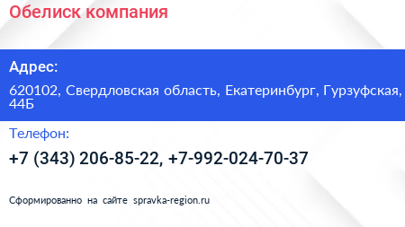 Обелиск, компания по адресу 620102, Свердловская область, Екатеринбург, Гурзуфская, 44Б в дальнейшем Организация, размещена в следующих категориях: