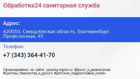 Обработка24, санитарная служба по адресу 620010, Свердловская область, Екатеринбург, Профсоюзная, 45 в дальнейшем Организация, размещена в следующих категориях: