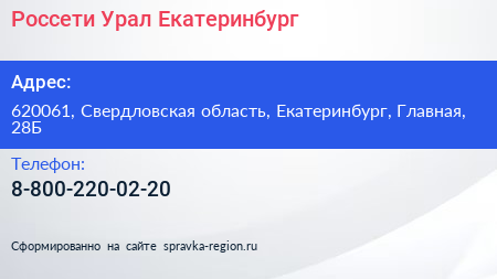 Россети Урал Екатеринбург по адресу 620061, Свердловская область, Екатеринбург, Главная, 28Б в дальнейшем Организация, размещена в следующих категориях: