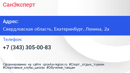 СанЭксперт по адресу Свердловская область, Екатеринбург, Ленина, 2а в дальнейшем Организация, размещена в следующих категориях: