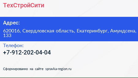 ТехСтройСити по адресу 620016, Свердловская область, Екатеринбург, Амундсена, 133 в дальнейшем Организация, размещена в следующих категориях:
