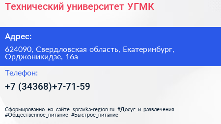 Технический университет УГМК по адресу 624090, Свердловская область, Екатеринбург, Орджоникидзе, 16а в дальнейшем Организация, размещена в следующих категориях: