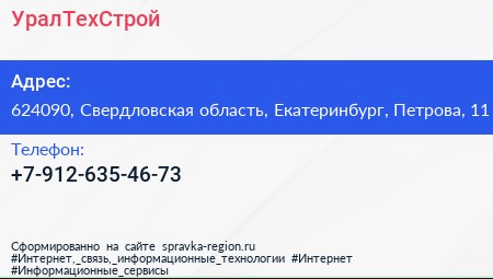 УралТехСтрой по адресу 624090, Свердловская область, Екатеринбург, Петрова, 11 в дальнейшем Организация, размещена в следующих категориях: