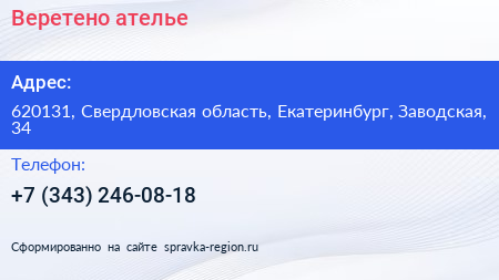 Веретено, ателье по адресу 620131, Свердловская область, Екатеринбург, Заводская, 34 в дальнейшем Организация, размещена в следующих категориях: