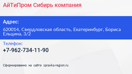 АйТиПром Сибирь, компания по адресу 620014, Свердловская область, Екатеринбург, Бориса Ельцина, 3/2 в дальнейшем Организация, размещена в следующих категориях: