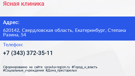 Ясная, клиника по адресу 620142, Свердловская область, Екатеринбург, Степана Разина, 54 в дальнейшем Организация, размещена в следующих категориях: