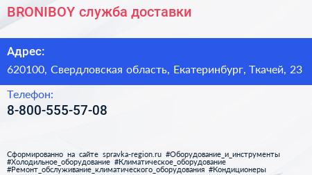 BRONIBOY, служба доставки по адресу 620100, Свердловская область, Екатеринбург, Ткачей, 23 в дальнейшем Организация, размещена в следующих категориях: