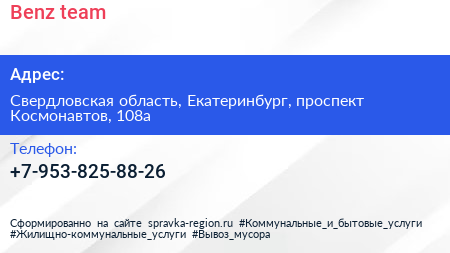 Benz team по адресу Свердловская область, Екатеринбург, проспект Космонавтов, 108а в дальнейшем Организация, размещена в следующих категориях: