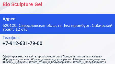 Bio Sculpture Gel по адресу 620100, Свердловская область, Екатеринбург, Сибирский тракт, 12 ст5 в дальнейшем Организация, размещена в следующих категориях: