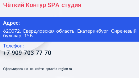 Чёткий Контур, SPA-студия по адресу 620072, Свердловская область, Екатеринбург, Сиреневый бульвар, 15Б в дальнейшем Организация, размещена в следующих категориях:
