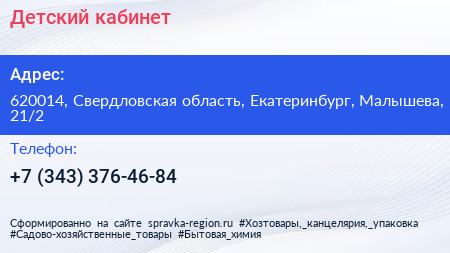 Детский кабинет по адресу 620014, Свердловская область, Екатеринбург, Малышева, 21/2 в дальнейшем Организация, размещена в следующих категориях: