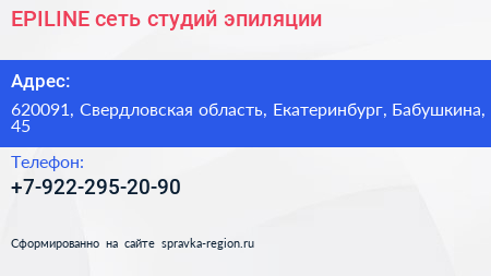 EPILINE, сеть студий эпиляции по адресу 620091, Свердловская область, Екатеринбург, Бабушкина, 45 в дальнейшем Организация, размещена в следующих категориях: