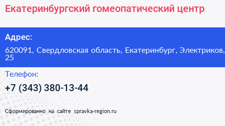 Екатеринбургский гомеопатический центр по адресу 620091, Свердловская область, Екатеринбург, Электриков, 25 в дальнейшем Организация, размещена в следующих категориях: