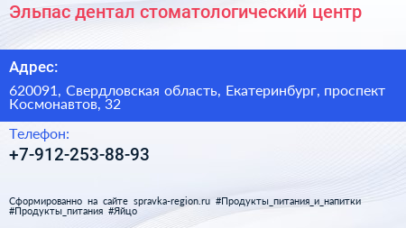 Эльпас-дентал, стоматологический центр по адресу 620091, Свердловская область, Екатеринбург, проспект Космонавтов, 32 в дальнейшем Организация, размещена в следующих категориях: