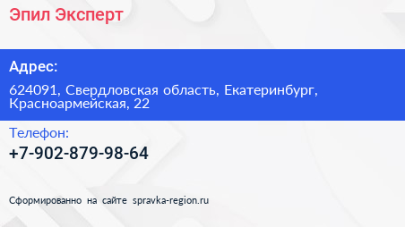 Эпил Эксперт по адресу 624091, Свердловская область, Екатеринбург, Красноармейская, 22 в дальнейшем Организация, размещена в следующих категориях: