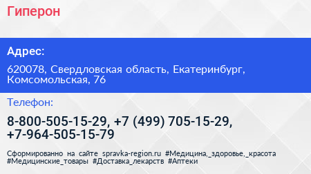Гиперон по адресу 620078, Свердловская область, Екатеринбург, Комсомольская, 76 в дальнейшем Организация, размещена в следующих категориях: