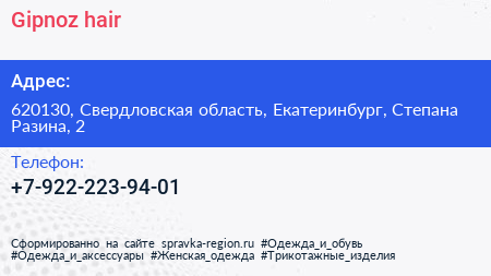 Gipnoz.hair по адресу 620130, Свердловская область, Екатеринбург, Степана Разина, 2 в дальнейшем Организация, размещена в следующих категориях: