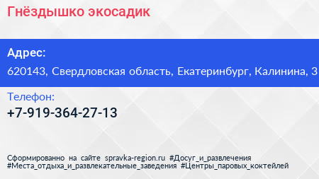 Гнёздышко, экосадик по адресу 620143, Свердловская область, Екатеринбург, Калинина, 3 в дальнейшем Организация, размещена в следующих категориях: