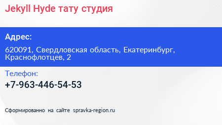 Jekyll & Hyde, тату-студия по адресу 620091, Свердловская область, Екатеринбург, Краснофлотцев, 2 в дальнейшем Организация, размещена в следующих категориях: