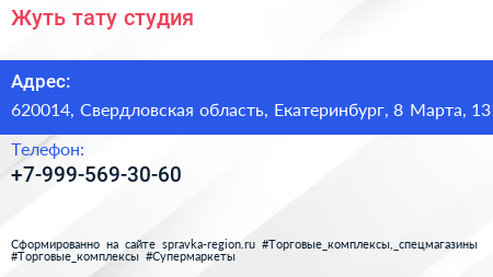 Жуть, тату-студия по адресу 620014, Свердловская область, Екатеринбург, 8 Марта, 13 в дальнейшем Организация, размещена в следующих категориях: