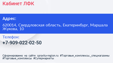 Кабинет ЛФК по адресу 620014, Свердловская область, Екатеринбург, Маршала Жукова, 10 в дальнейшем Организация, размещена в следующих категориях:
