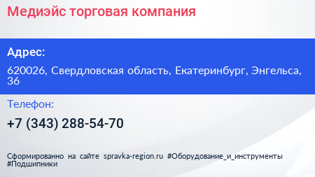 Медиэйс, торговая компания по адресу 620026, Свердловская область, Екатеринбург, Энгельса, 36 в дальнейшем Организация, размещена в следующих категориях: