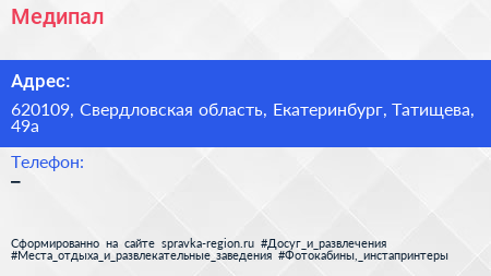 Медипал по адресу 620109, Свердловская область, Екатеринбург, Татищева, 49а в дальнейшем Организация, размещена в следующих категориях: