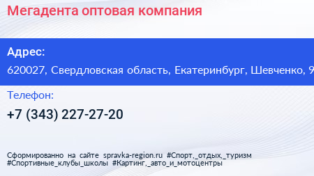 Мегадента, оптовая компания по адресу 620027, Свердловская область, Екатеринбург, Шевченко, 9 в дальнейшем Организация, размещена в следующих категориях: