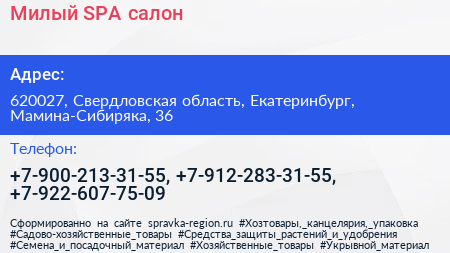 Милый, SPA-салон по адресу 620027, Свердловская область, Екатеринбург, Мамина-Сибиряка, 36 в дальнейшем Организация, размещена в следующих категориях: