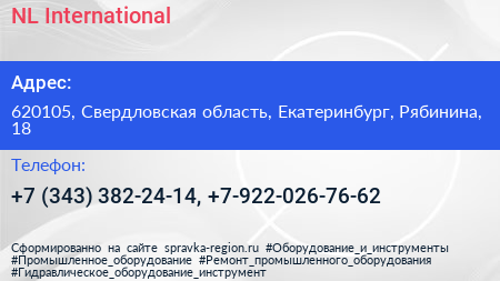NL International по адресу 620105, Свердловская область, Екатеринбург, Рябинина, 18 в дальнейшем Организация, размещена в следующих категориях: