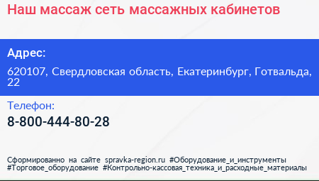 Наш массаж, сеть массажных кабинетов по адресу 620107, Свердловская область, Екатеринбург, Готвальда, 22 в дальнейшем Организация, размещена в следующих категориях: