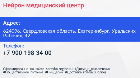 Нейрон, медицинский центр по адресу 624096, Свердловская область, Екатеринбург, Уральских Рабочих, 42 в дальнейшем Организация, размещена в следующих категориях: