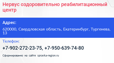 Нервус, оздоровительно-реабилитационный центр по адресу 620000, Свердловская область, Екатеринбург, Тургенева, 13 в дальнейшем Организация, размещена в следующих категориях: