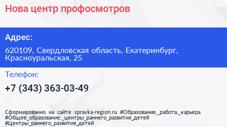Нова, центр профосмотров по адресу 620109, Свердловская область, Екатеринбург, Красноуральская, 25 в дальнейшем Организация, размещена в следующих категориях: