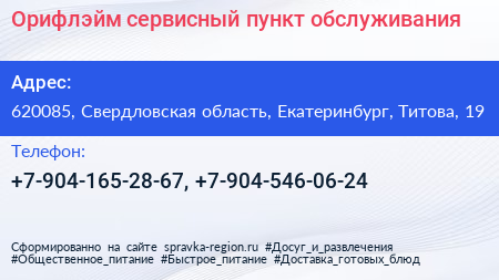 Орифлэйм, сервисный пункт обслуживания по адресу 620085, Свердловская область, Екатеринбург, Титова, 19 в дальнейшем Организация, размещена в следующих категориях: