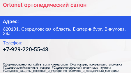 Ortonet, ортопедический салон по адресу 620131, Свердловская область, Екатеринбург, Викулова, 28а в дальнейшем Организация, размещена в следующих категориях: