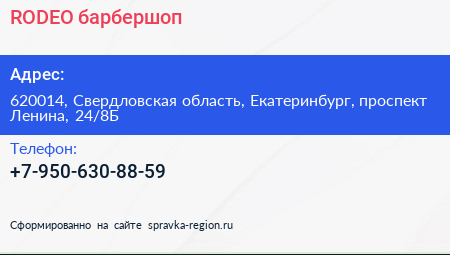 RODEO, барбершоп по адресу 620014, Свердловская область, Екатеринбург, проспект Ленина, 24/8Б в дальнейшем Организация, размещена в следующих категориях: