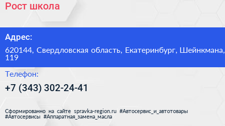 Рост, школа по адресу 620144, Свердловская область, Екатеринбург, Шейнкмана, 119 в дальнейшем Организация, размещена в следующих категориях:
