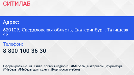 СИТИЛАБ по адресу 620109, Свердловская область, Екатеринбург, Татищева, 49 в дальнейшем Организация, размещена в следующих категориях: