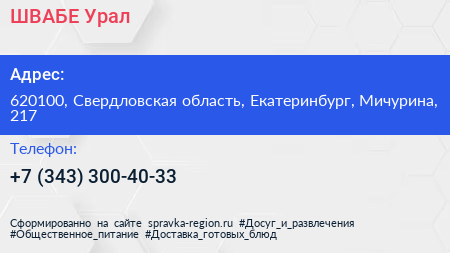ШВАБЕ-Урал по адресу 620100, Свердловская область, Екатеринбург, Мичурина, 217 в дальнейшем Организация, размещена в следующих категориях: