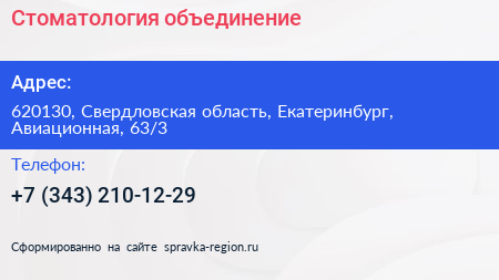Стоматология, объединение по адресу 620130, Свердловская область, Екатеринбург, Авиационная, 63/3 в дальнейшем Организация, размещена в следующих категориях: