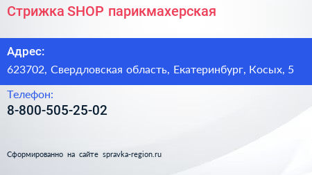 Стрижка-SHOP, парикмахерская по адресу 623702, Свердловская область, Екатеринбург, Косых, 5 в дальнейшем Организация, размещена в следующих категориях: