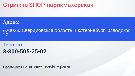 Стрижка-SHOP, парикмахерская по адресу 620028, Свердловская область, Екатеринбург, Заводская, 20 в дальнейшем Организация, размещена в следующих категориях: