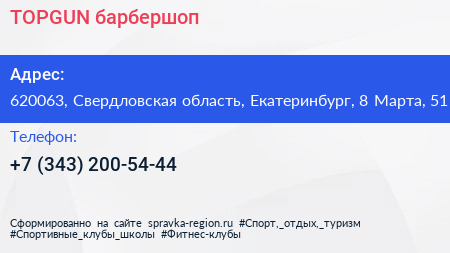 TOPGUN, барбершоп по адресу 620063, Свердловская область, Екатеринбург, 8 Марта, 51 в дальнейшем Организация, размещена в следующих категориях:
