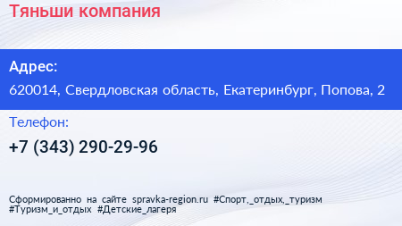Для связи с организацией воспользуйтесь номером телефона: +7 (343) 290-29-96. Пн: c 10:00-14:00, Вт: c 10:00-14:00, Ср: c 10:00-14:00, Чт: c 10:00-14:00, Пт: c 10:00-14:00, Сб: выходной, Вс: выходной, вы можете обратиться в эту организацию.