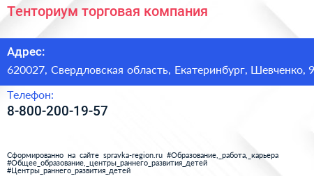 Тенториум, торговая компания по адресу 620027, Свердловская область, Екатеринбург, Шевченко, 9 в дальнейшем Организация, размещена в следующих категориях:
