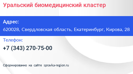 Уральский биомедицинский кластер по адресу 620028, Свердловская область, Екатеринбург, Кирова, 28 в дальнейшем Организация, размещена в следующих категориях: